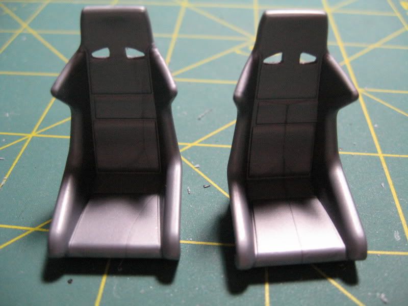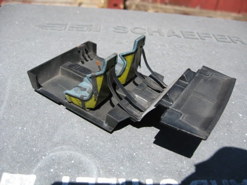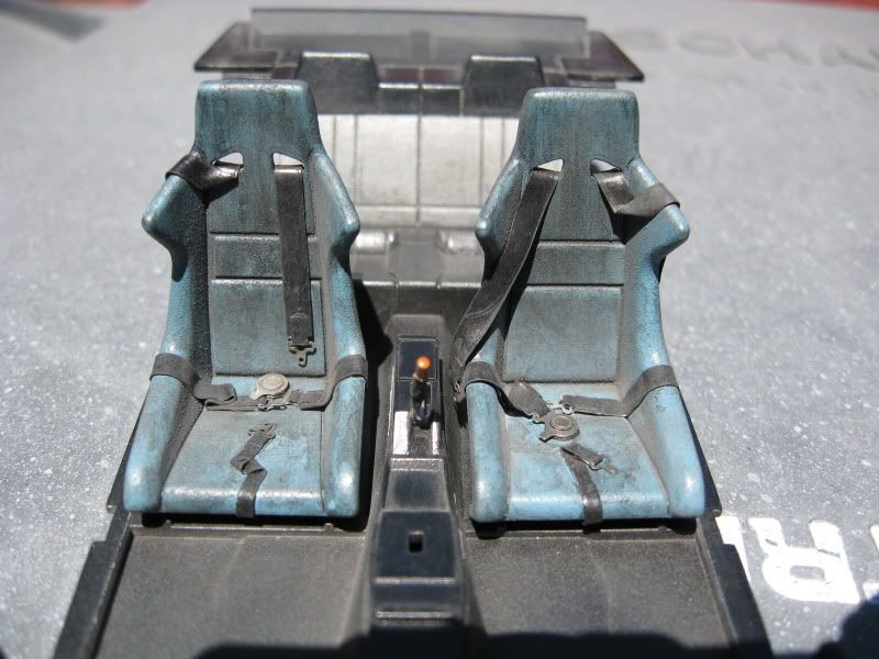 The seats are in with the belts, Crazy Modeler hardware with lead foil for the belts, seats are painted Tamiya AS-19 Intermediate Blue over MM fabric gray with SMS carbon kevlar on the back.