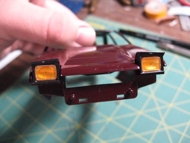 Trim has been painted, taillights are in and the headlights work.
