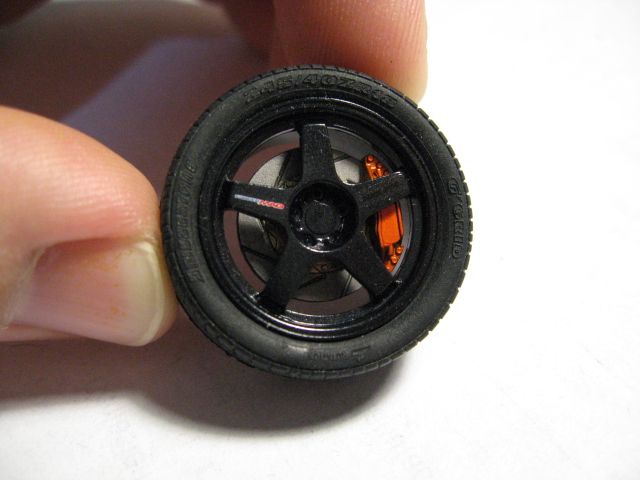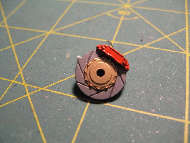 Brakes from the Tamiya JGTC Mobile 1 NSX, Alclad pale gold, Model Master burnt metal and Model Master turn signal amber lacquer.