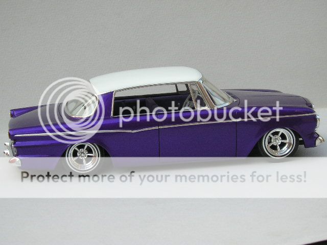 I was looking for something a bit different and managed to pick up this promo from E-Bay. I took it apart and then gave it a mild custom treatment by removing the emblems & door hadles & lowered the suspension. Colour is HOK Violette & Zero Ford Diamond White.Wheels are Pegasus Sovereigns.