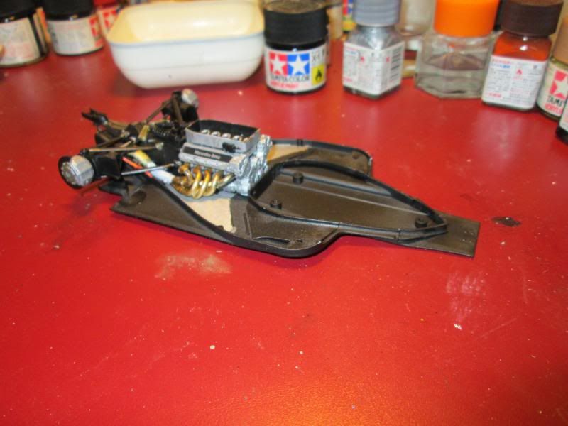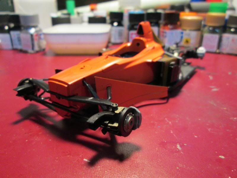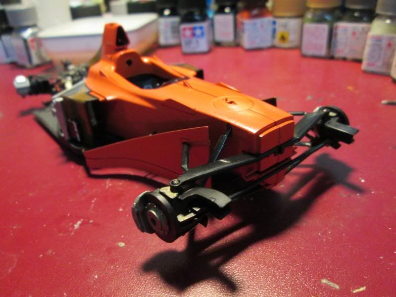 The model looks nice but the monocoque and sidepods have visible joint lines, which should be hidden with some putty and sanding.