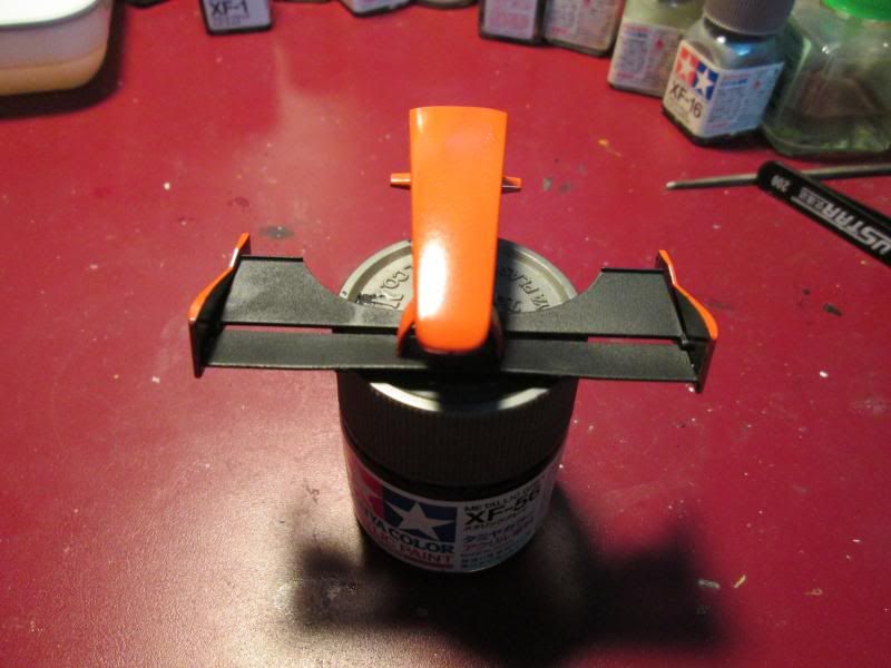 I primed the parts white first before I sprayed the orange parts with TS-12.