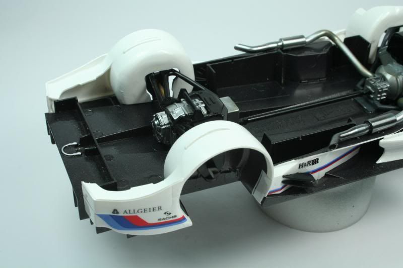 Bit more done, got the wheel arches on, still got to paint the outsides of them, wheels done,(tyres were good, no Tamiya seam down the middles), also bit more to the engine, and started the decals on the body.