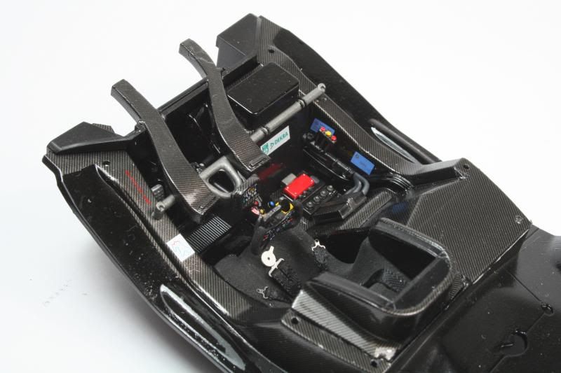 More progress, been working on the interior, again great detail in the kit, the only additions I have done, are the seat belts,, I had to remove the molded belts on the seat first, one thing that bugs me with the molded belts on kits, is that they always seem to have the crotch harness coming up from the front of the seat, very strange! and the carbon decals the other addition.
