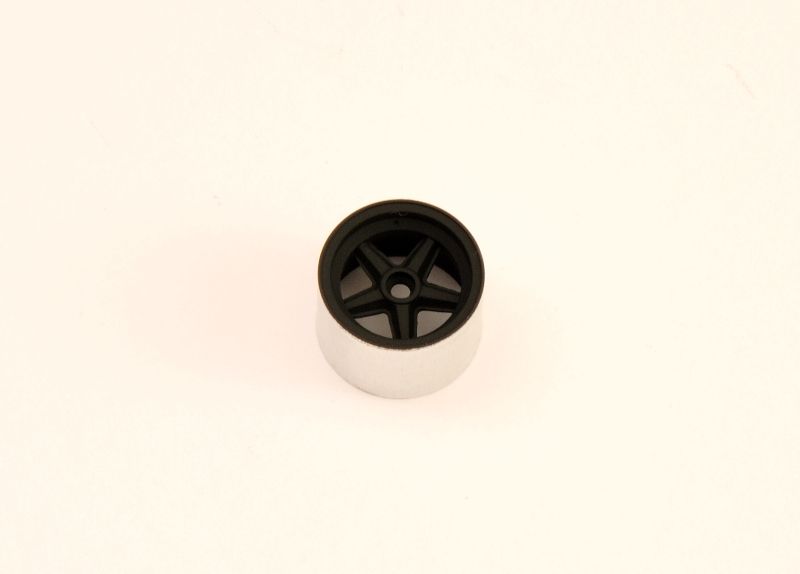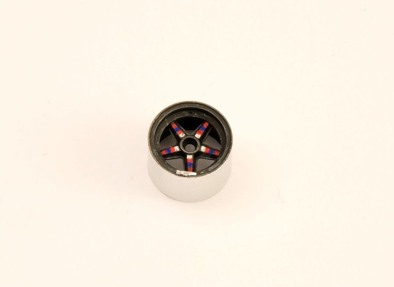 A small WIP depending the rims. As these are turned metal parts and the insert made of white metal, they are great to handle. First they are cleaned with Tamiya acrylic thinner X20A, then a base coat of Tamiya X18 semi gloss black mixed with XF1 flat black was spraypainted.