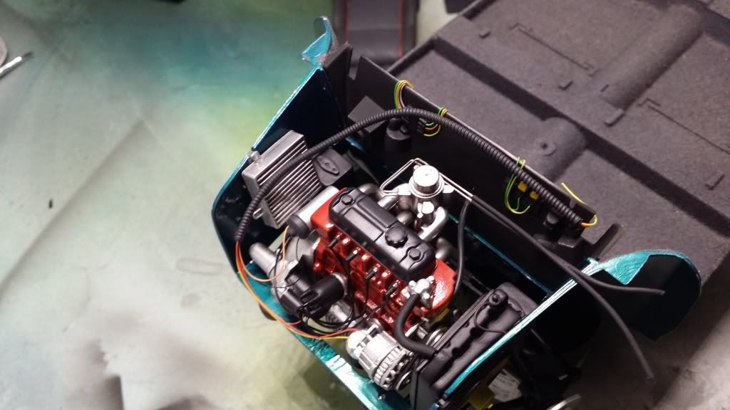Here's a little progress on the mini project. I finally started the engine compartment. I improved the 'nonexistent' alternator:smile: I know it isn't perfect but I can live with it.