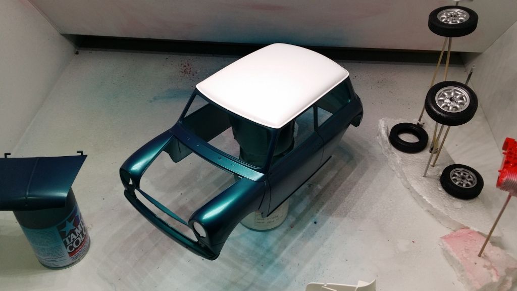 The Mini is pretty much done, -the rear fog light and some minor accessories. The Mini was fighting me till the very end though... As I mentioned a while ago, I had a mishap with bonnet stripes and when I tried to remove the decals... they pulled the paint So I tried again and they looked 10 times worse!!!