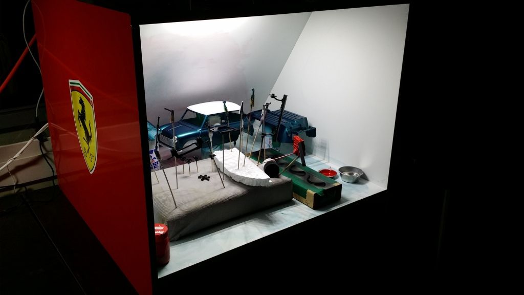 Today I continued working on the engine compartment (which is 85% done now) and did a test-fit with the body to make sure that everything fits, opens/closes etc. So far so good:)