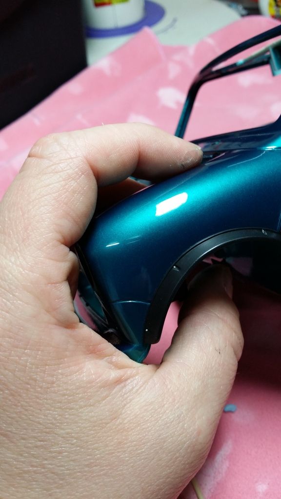 I also did a mock up of the chassis and body shell to check if the color matching. It wasn't too bad but I gave the bottom part a light coat of base color to make it better.
