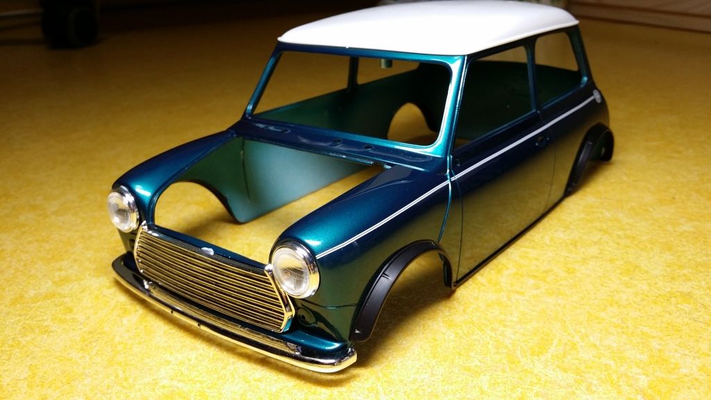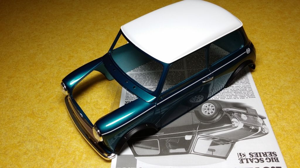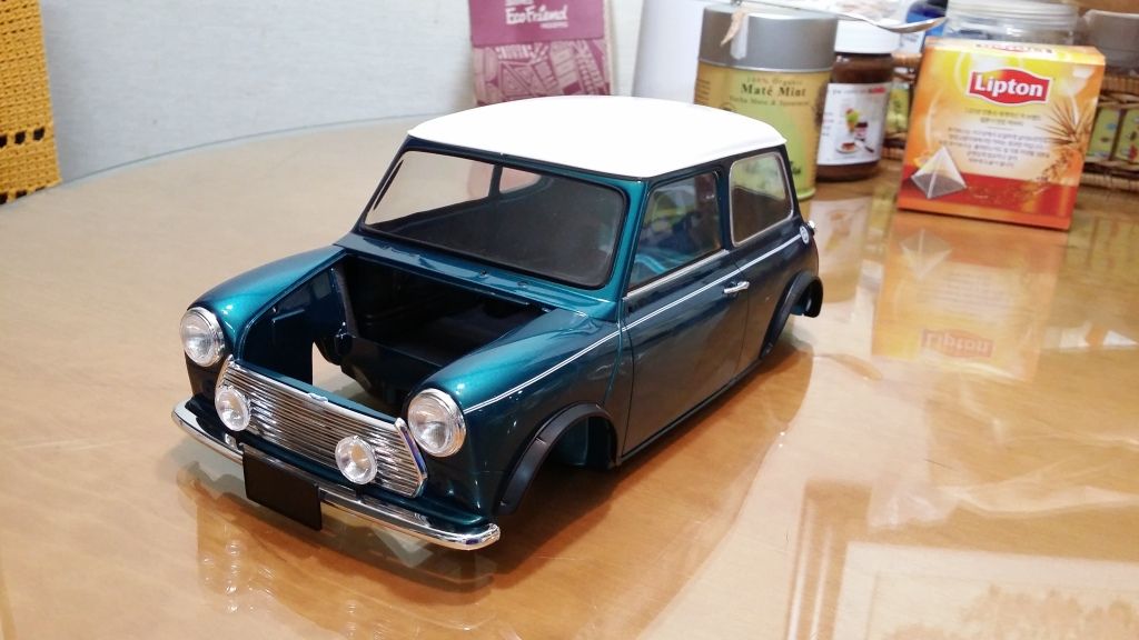 Here is my latest project - big scale Mini by Tamiya. Although quality wise it's not as good as other Tamiya's big scale kits I have built but it's still a fun model to build (so far:smile:). It will require some detailing especially in the engine bay but other than that I'm not planing on making any major changes to the kit. Anyway, here's where I am so far: