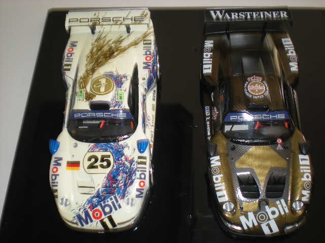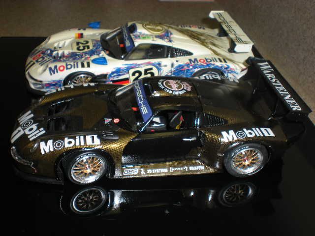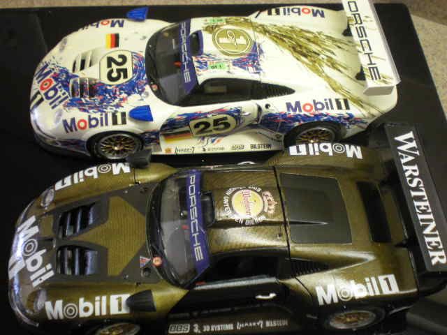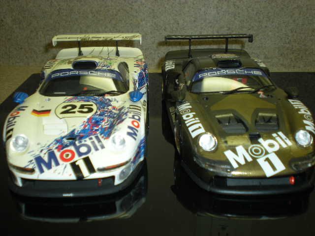 Here's two versions of the Porsche 911 GT1 - both are Tamiya kits. Test version made with Scale Motorsports decal sheet.