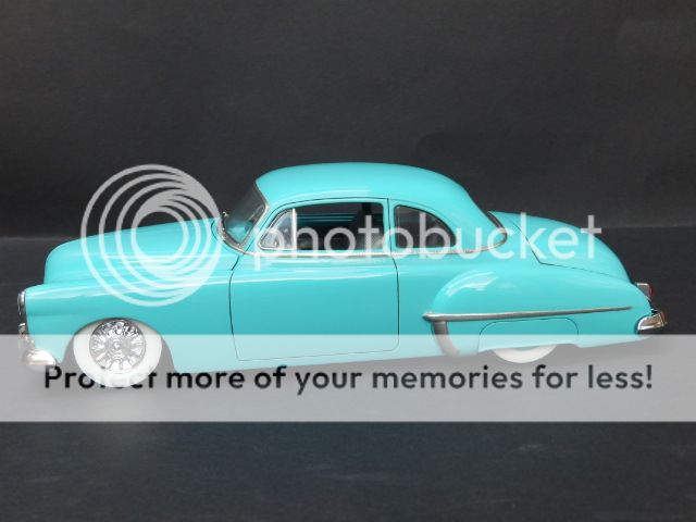 Don't build so often thses days but here's my latest completion- it's the Revell kit with some trim removed and a lowering job. Caddy hubcaps & whitewall tires are from the Modelhaus, colour is slightly lightened Coral Blue from Zero paints.