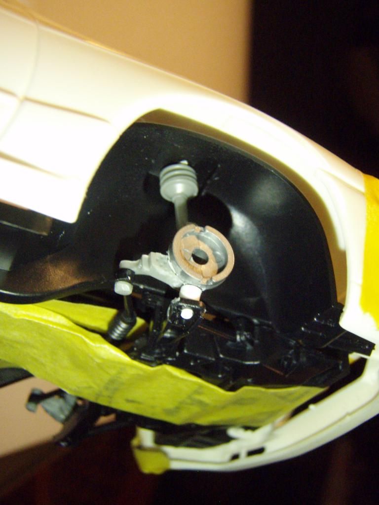 i modified the suspention a fair bit, not only to make the tamiya brakes fit and align to the guards correctly, but also lowered the right hight a little bit, just to where it probably should be on the std car. it was originally too high to start with, and to be honest i could have gone a little lower but its fine for this model. im happy.
