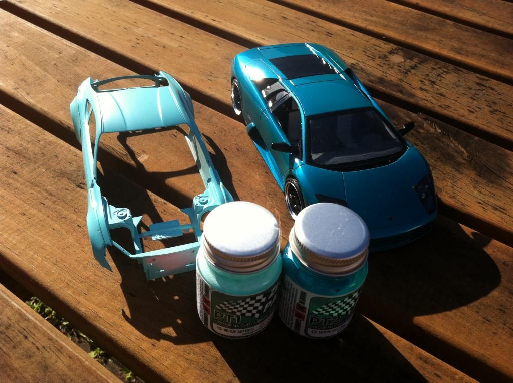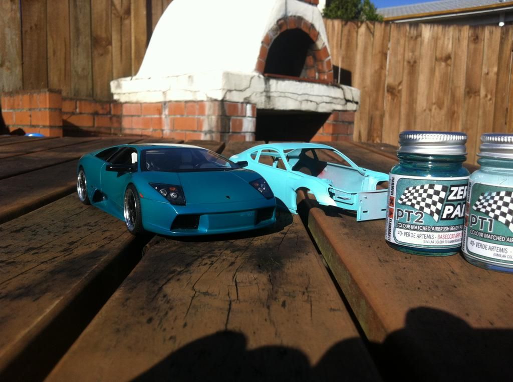 This is where I'm up to, Colour is Zero Paints Lamborghini Verde Artemis (40th Annivesary edition) Currently has Base coat applied, waiting on pearl top coat to be done.
