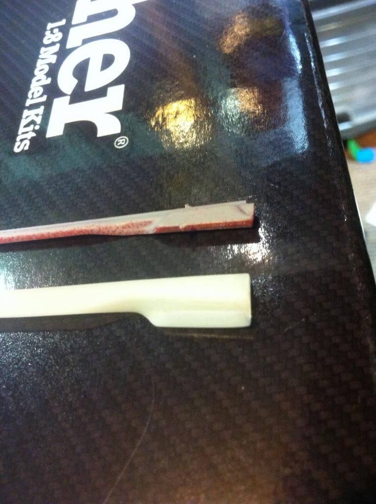 The side skirts supplied in the Aoshima kit are pretty average, so I grabed my Eightyone side skirts & am modifying them to suit the slightly different Aoshima Kit.