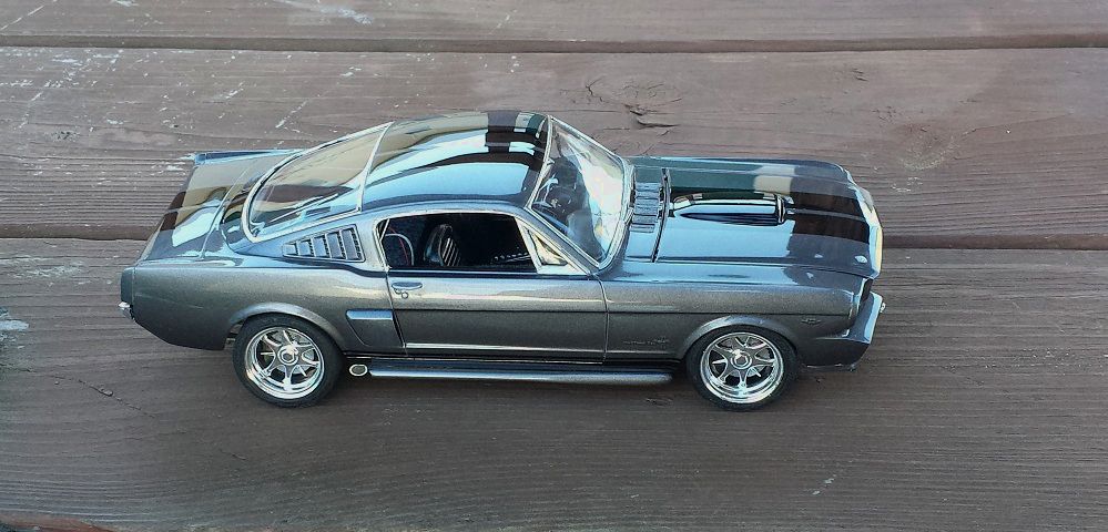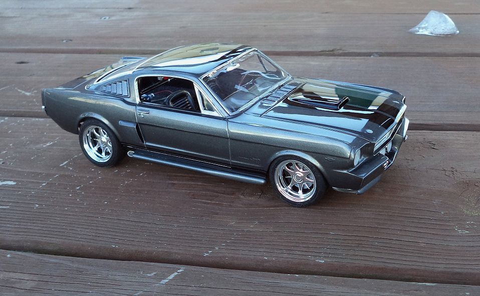 The kit is the Revell GT350H kit (from memory), the wheels are pegasus daggers, and the front bumper is modified from the GT350R kit. The rocker moldings are from scratch.