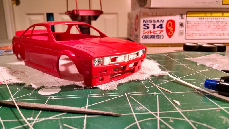 Everyone has surely seen the renderings of Rocket Bunny's new kit for the S14 Silvia. If not, look here for pictures (http://www.speedhunters.com/2015/04/a-new-beginning-for-rocket-bunny/) of what the car is supposed to look like. There are some pictures of the actual 1:1 under construction on the internet out there, but I am trying to get this done before any transkits are available!