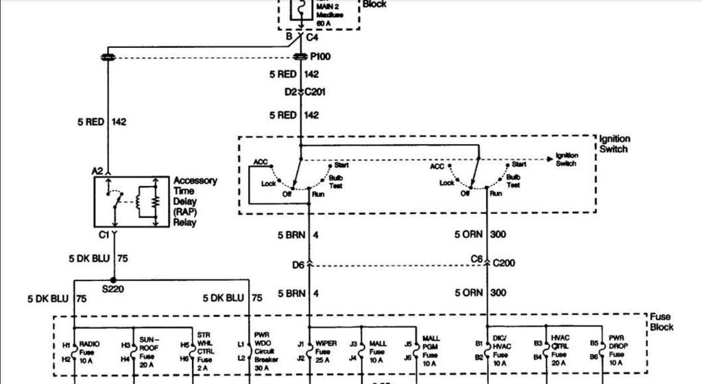 The accessory time delay relay (RAP) shown in the diagram above is located "behind the right side of the IP, mounted to the IP cross beam, above the fuse block" per the FSM. Jumper pins A2 (red wire) and C1 (dark blue wire) on the connector.