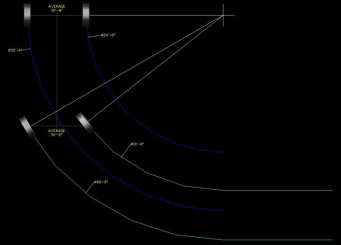 The problem is that when turning the tires on the steering axle move farther than the tires on the fixed axle. When only a little turn is involved the difference is small and allowed by tire slip. At larger steering angles the front tires may travel more than 2 times the distance of the rear wheels. As a matter of fact, in very tight turns the rear axle may travel a net of almost zero distance (pivoting on the axle) with one tire moving forward and one backward. At the same time the front tires must roll the full circumference of the arc of the turn.