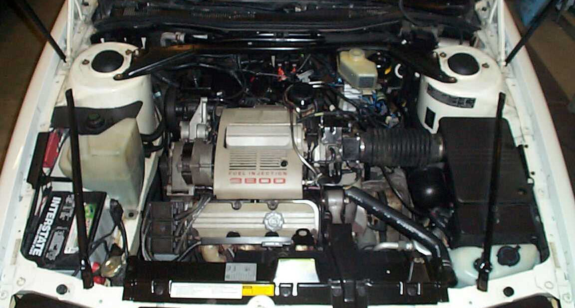 Engine bay of Pontiac 3800 GT