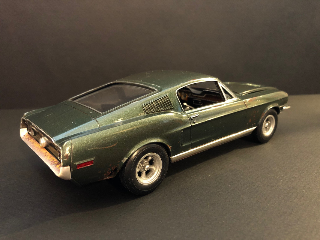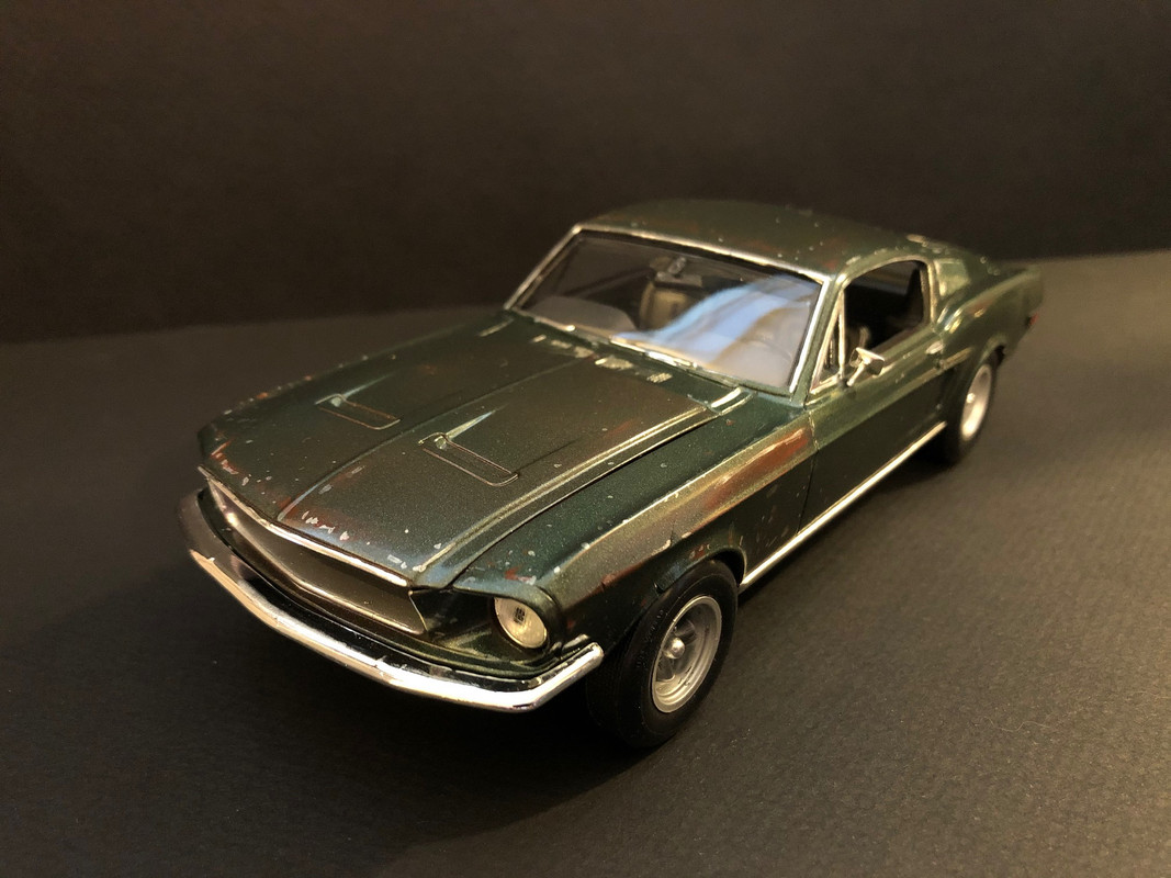 I started with the Revell 68 Mustang GT 2 in 1 kit. It is a plastic version of a die-cast model and assembly went together really well with some screws in a few places. You have all the parts needed for the Bullitt version inside and I found that the stance was right which is a first for me on a Revell kit.