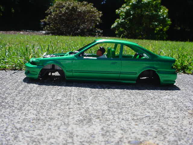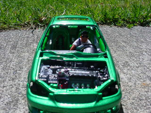 I started this kit about a week ago and painted it blue. Halfway through the model i decided to go with a metallic green and i think it looks cool. And thanks to integra16(i think) because i put the same homie in my civic.