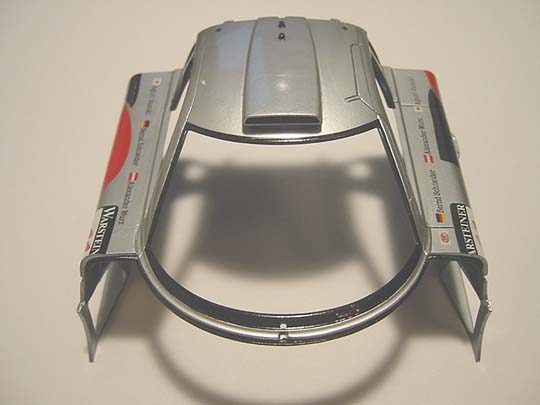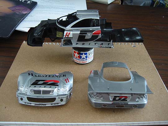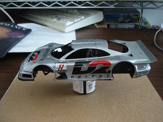 well, this project is going on 5 months and still counting. i took all your comments to heart and made some changes to the body. i cut out the lower area on the front cowl as it began to bother me once rcmaxx pointed it out :apoke: , so i stripped the paint and the decals and took out the lights to accomplish this task. thus this is going to be a single door street version of the clk gtr. not too much going on inside... made minor changes to the air duct... just gave it a little shape. i know its not accurate but i didn't want this thing sitting on my bench any longer than it already has. however, it'll be at least two more weeks before i am able to paint the body. the only place in san francisco that carries gunze lacquer thinner is out of stock and their next shipment is in two weeks! :mad: