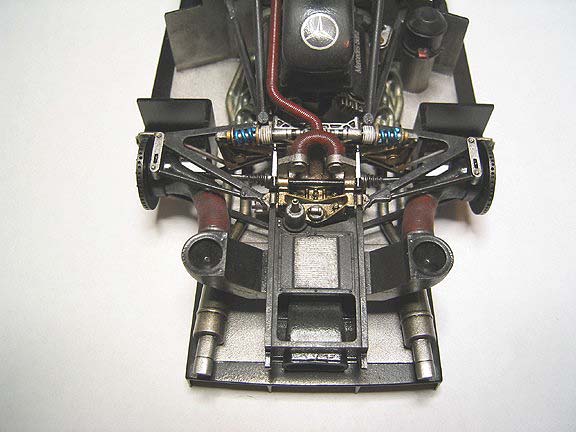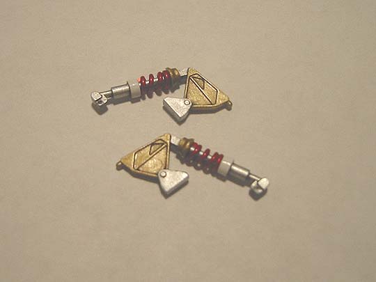 the front suspension springs were rebuilt using aluminum wire. it was the first time i tried anything of the sort (which explains why painting something like that should take 15min dragged on to 1 week :rolleyes:) getting the springs to look right took two rods of aluminum rod stock!