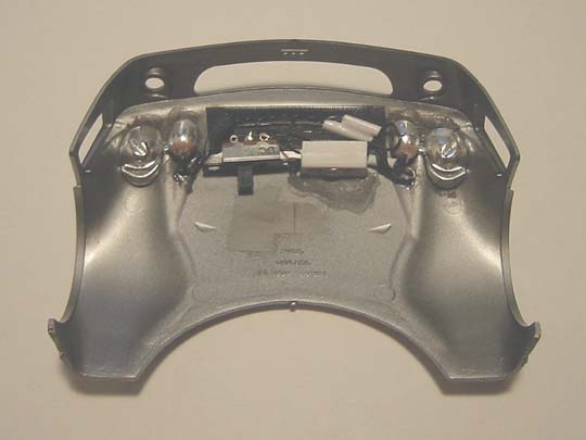 here is a pic of the circuit layout. i used a piece of wire mesh to hide the hardware from being seen from the outside. otherwise the source and switch will be seen through the grill. i used a 397 battery for this application. any 1.5v source would do the trick if you use a parallel setup. keep in mind that you need a 3.0v source if you intend to use the series method. i used the parallel method. there are alot of advantages to using parallel over series but i think i'd just bore you with the details. the switch is a sub mini slide switch.