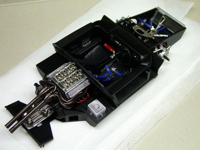 Took some quick snaps of the almost finished body and chassis before they are mated together. Kind of a shame to cover up the chassis with all it's detail. It was raining when I took these pictures, which explains the water droplets on the rear window.