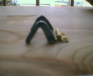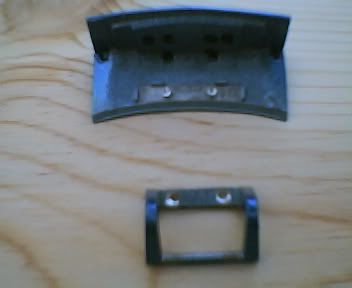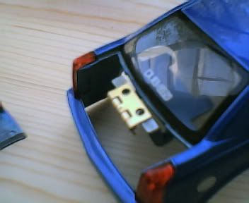 Now take the trunk hinge and carefully place a drop of super glue in between the 2 rivet holes (or put some putty there) and then carefully place the cabinet hinge in the middle of the trunk hinge make sure the back of both hinges line up evenly, see pics