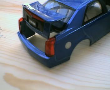 Remove the chasis and interior to access the trunk hinge. Remove the piece of metal that holds the trunk in the hinge area. Then take the trunk off of the body