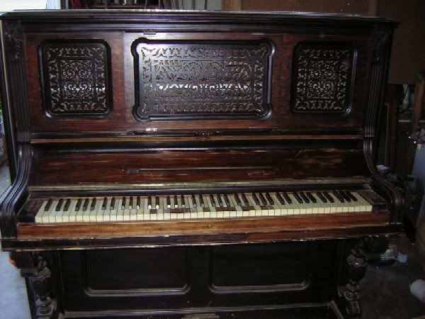 anyways, we had an old POS piano sitting in our basement for years. looked alot like yours, worn down, missing keys, cracked ivory, and was missing a few hammers too. so we had a piano mover come in to take it away to wherever. well they walk in, look around it a bit, and find out that it's a 1904 vintage piano. we sold it for $2500.