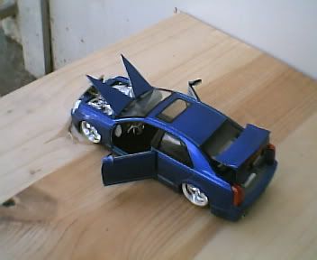 Just did the doors today because I had a half day at school, and it just didnt look right with doors that open the regular way. I am not sure if I posted this up here before but anyways as of now it has suicide doors, 3 way opening hood, and a flip flop trunk. I am pretty sure that I am done with body mods, maybe just some shaving to make it smoother. Here are some pics
