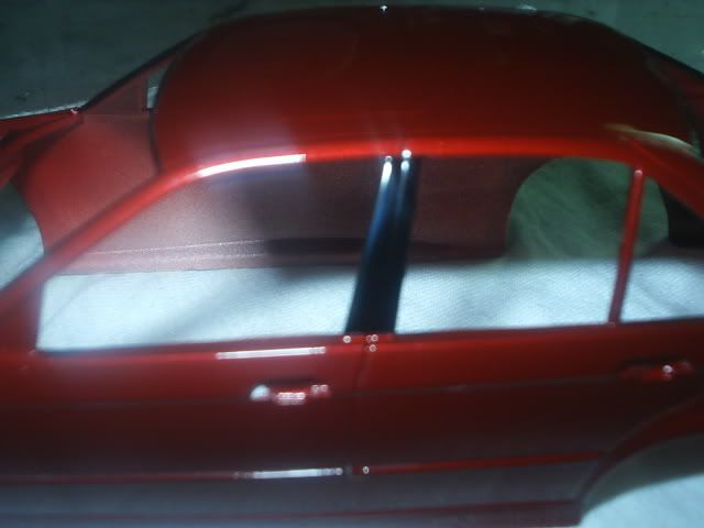 Boy am i glad to get the painting out of the way,lol. As you can see i took the advice of another member and painted the window rubbers, It is my first time masking it all off and hiting it with black though my airbrush. I am very happy with the results. I still need to run the fule lines on the chassis, And make some hose's for the motor. I will start on the suspenion in the morning. Later guys.