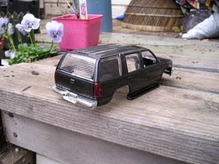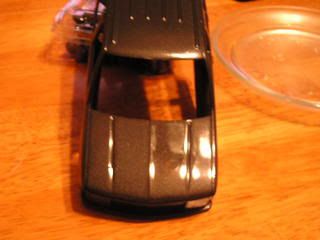 I picked up this kit last night at my hobby shop for like 2 bucks because the rims and metal axels were missing but I wasn't planning on using them anyways so it's all good. The color is Testors Black metallic and looks badass in person. It's overcast right now so the pics aren't the best. I'm suprised how easy this kit puts together(I know it's snap-tite but it's an AMT kit). The interior is white and has 2 12" inch subs and 2 Amps. The rims are gonna be Hoppin Hydros 24 inch Bellagios. No pics of the interior or rims right now.