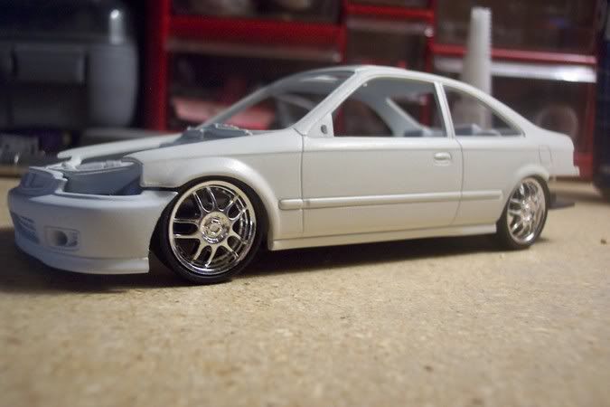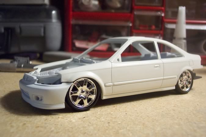 here's my new project for 05'. its revells civic coupe si. so far ive only painted the body of the car duplicolor super white and when the wheather clears up im gonna hit it with tamiya's ts-45 paint. tell me what you think of it so far. i also need your help on what wheels i should put on it.