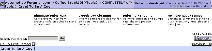 Ok, so I go back to that thread to check it out and see if it comes up for me. Well it did,there were 3 related to pubic hair, and the other one relating to wedding gown cleaning. Now tell me how those 2 are related???