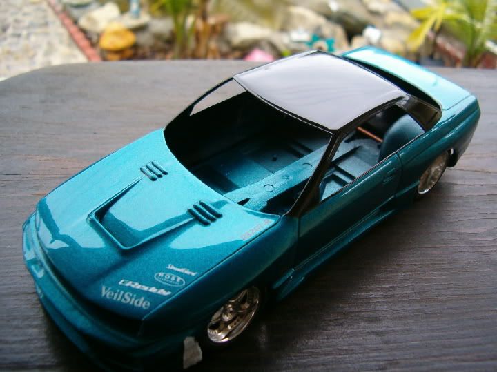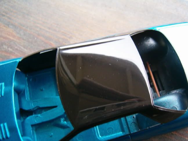 Sweet! I like how you seperated the two tones on this car:) I think that if you put more clear coat on the whole car you might lose some panel line details. I would mask the car up and just clear coat the roof:)