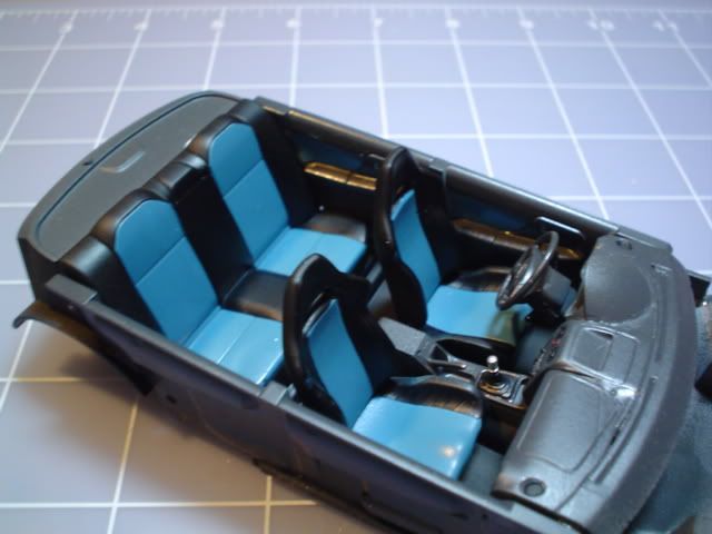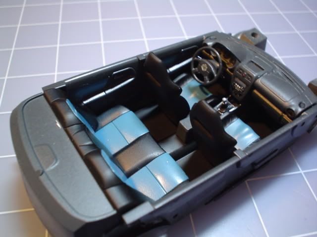 Busy weekend, have been working on the interior a lot. I used my airbrush for the interior (something I tried on the Fit for the first time) and I have to say, airbrush on interior = the greatest thing in the freakin world! The mask lines are perfect because of the low pressure and paint, plus, I can make all sorts of colors for contrast. I know you WRX folks are gonna fuss me because that blue seat inserts are way blue, but, I wanted contrast. I would have liked the gray plastic to be lighter, too, for even greater contrast to the black seats. But we can't win them all.