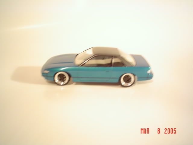Tamiya s13, testors dark metallic bluegreen, tamiya gunmetal top, work rims, black centers. This is going to be lhd, back seat ripped out, full rollcage, ricer exhaust.
