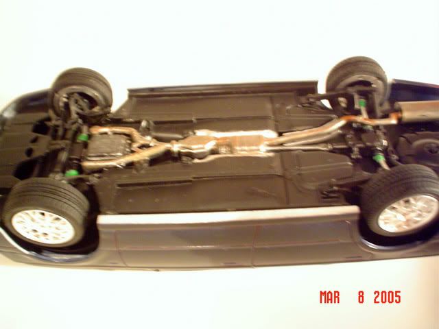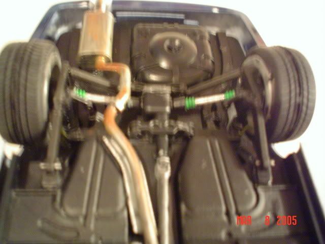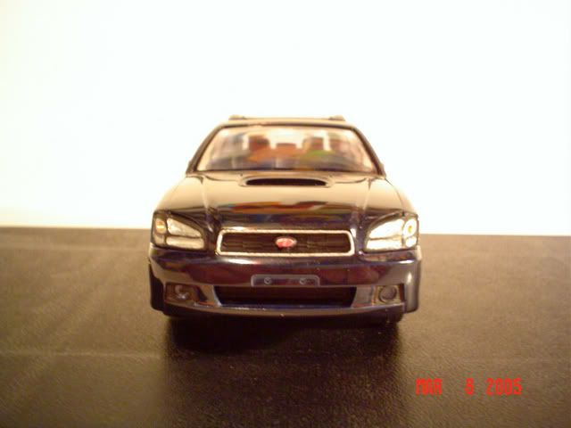Fujimi legacy kit, tamiya dark metallic blue, scratchlifted the suspension, tired to drill the springs out, not so good, anyway, Scorpion springs, lifted suspension, pink "i" emblem, messed up on the green under the car, if you got a subie, you'd know wat I mean, weathered underside.