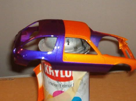 Hi all, I'm new around here and I thought I'd put up some pics of a Pacer I'm doing as a pro turing. I put a 390 with power enhancers from a S/C Rambler I put a V10 in. It's orange and purple Standox automotive paint I mixed up. I'm leaving off the front bumper and I thinned the rear. I still have lots of work to do on it.