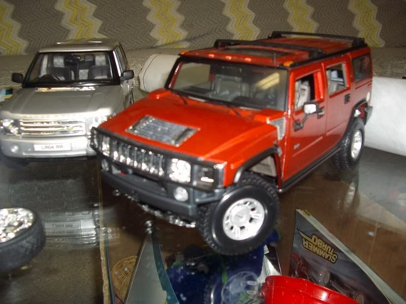 Range rover looks pimp with the gucci. Needs some shitty ghetto chromed rims to fit the suit now. H2 looks sweet too. Nice.