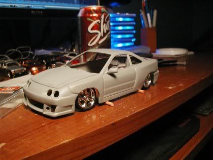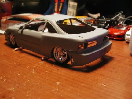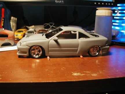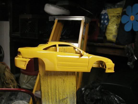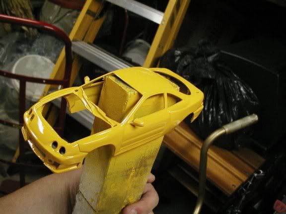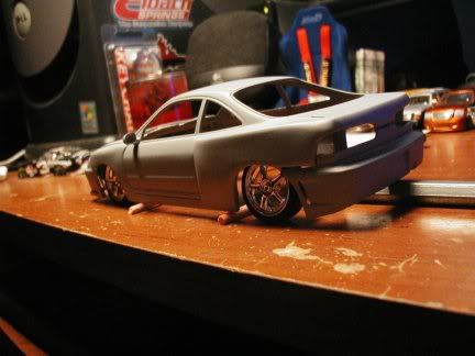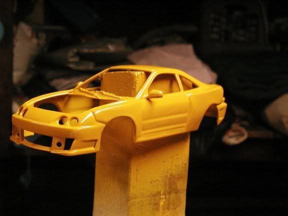 New pics :D got the whole car primered, just waiting on the hood from sas, then ill shoot the yellow. I am going to use camel yellow from tamiya for this, as i thought it would look really nice on this build. here are the pics.
