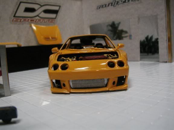Pretty big update here. Got the turbo all straightened out, and mounted the intercooler. Also i mocked up the ride height i think i am going for, though i might have to cut the wheel wells to acheive it. Well here are some mock up shots in my nearly completed diorama. Enjoy :smokin: