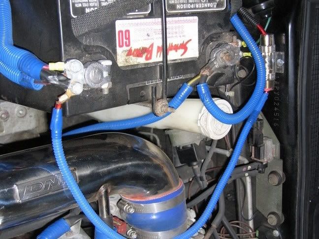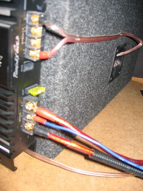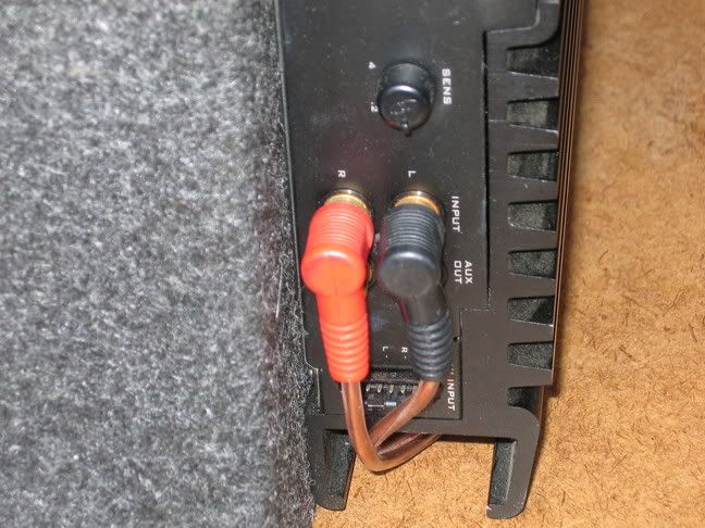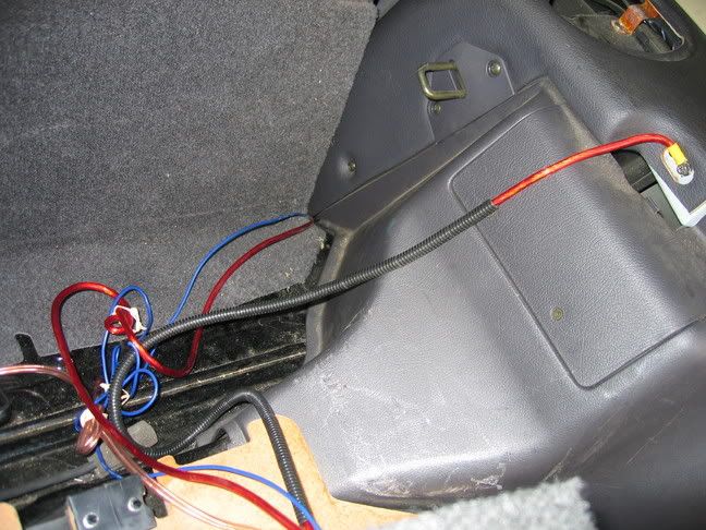 I grounded the sub right there and then ran the power and other wire down teh right side of the car (under seats, under door panel, etc). FOr this, I then drilled another hole through the fire wall on the passenger side (don't knick a fuel line like I did :rolleyes: ) so that the power wire would come into the engine bay right by the battery. The RCAs, I ran down the drivers side of the car.