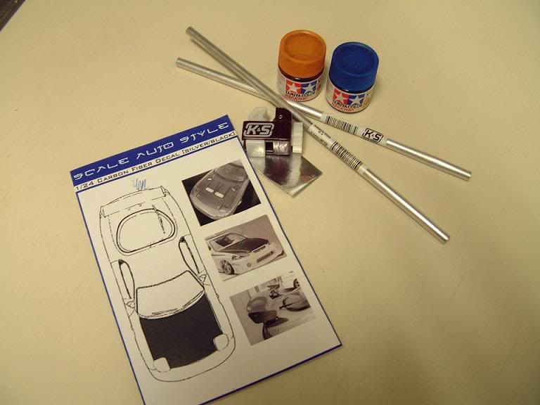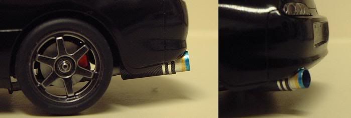 headlights and tails, rearviews, oil and dif cooler fabricated, aded CF stripe down the sides (I may use this idea but change it up a bit before its done, what do you think?). Also, I broke the penis off one of my TE37s, so the R32 wheel is on temporary like.
