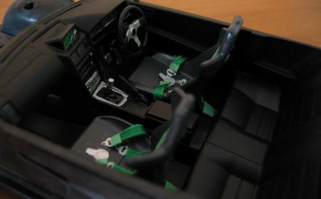 This is my completed Aoshima Top Secret R34. It's my 2nd attempt at modeling so please take it easy on me haha :)! Anyways, more about this build. The body and wheels were painted tamiya ts-21. I used mesh to create the carbon fibre pattern on the hood, trunk, rear diffuser, and spoiler. I also scratchbuilt 2 sets of seatbelts for the interior (very time consuming :banghead:).