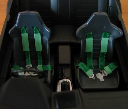 I used green ribbons for the strap and used THIS (http://www.scalemotorsport.com/pdf/8122.pdf) template for the buckles.